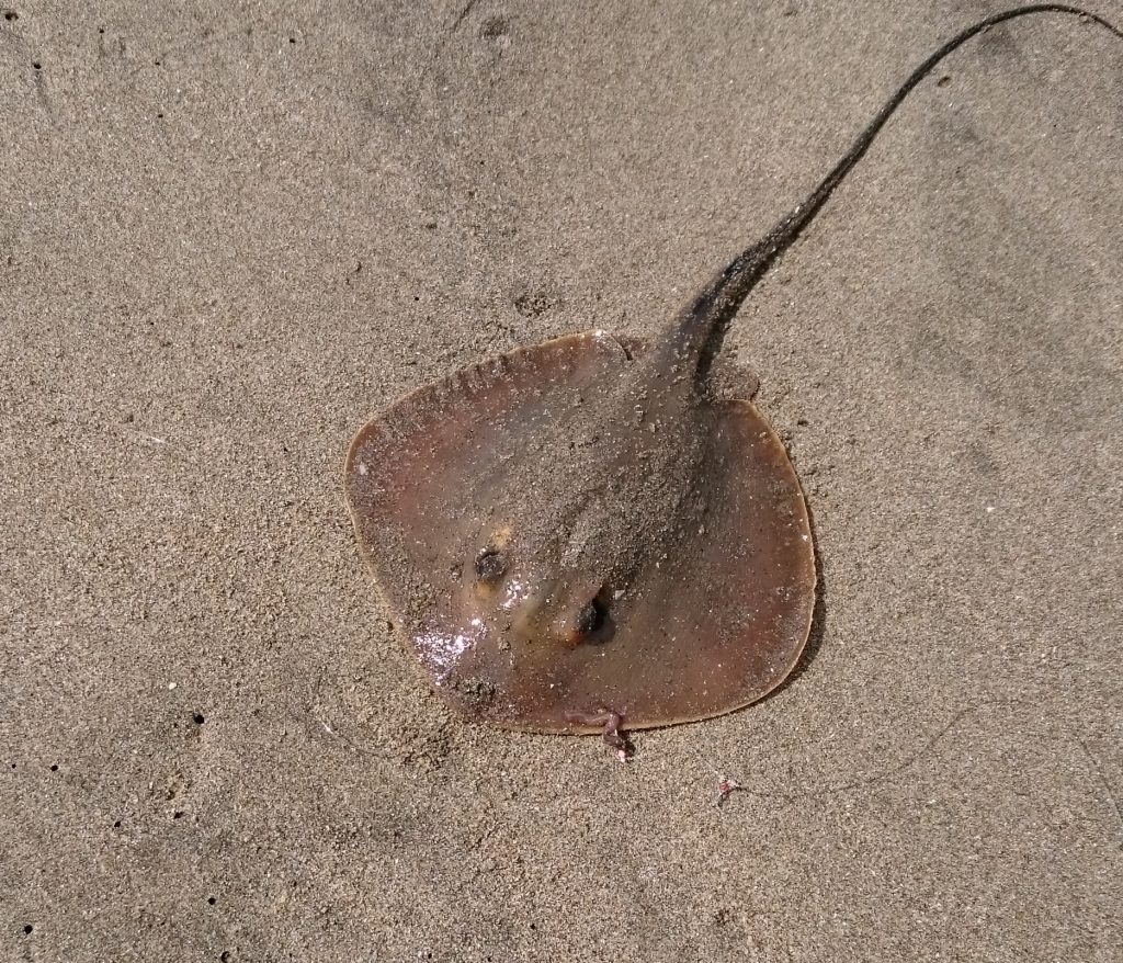 ひれに針が引っかかっていました。尻尾に気を付けて針を外します。